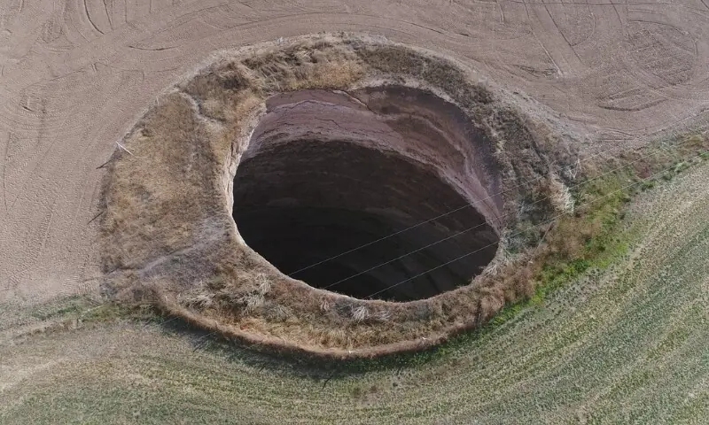 ترکیہ کے وسطی زرعی علاقوں میں زمین مسلسل دھنس رہی ہے، جہاں ہزاروں سنک ہولز کھیتوں کو نگل رہے ہیں اور ملک کے اہم گندم اگانے والے علاقوں میں خطرے کی گھنٹی بج گئی ہے۔ خاص طور پر خشک سالی سے متاثرہ ‘کونیا’ کے ہموار میدانوں میں یہ سنک ہولز اچانک نمودار ہو رہے ہیں، جس سے زرعی زمینیں اور مقامی انفراسٹرکچر شدید متاثر ہو رہے ہیں۔