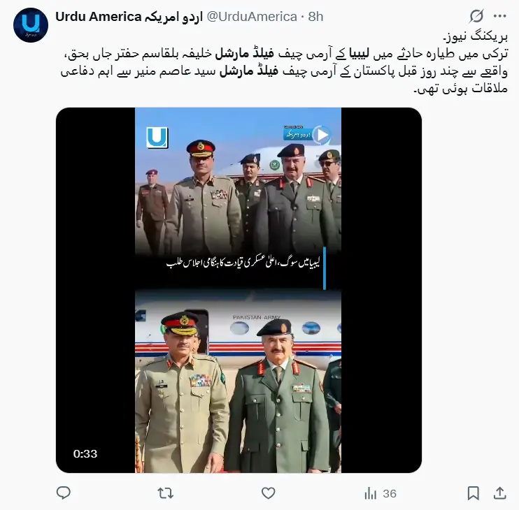 لیبیا کے آرمی چیف کی فضائی حادثے میں ہلاکت اور فیلڈ مارشل عاصم منیر کا حالیہ دورہ زیر بحث کیوں؟