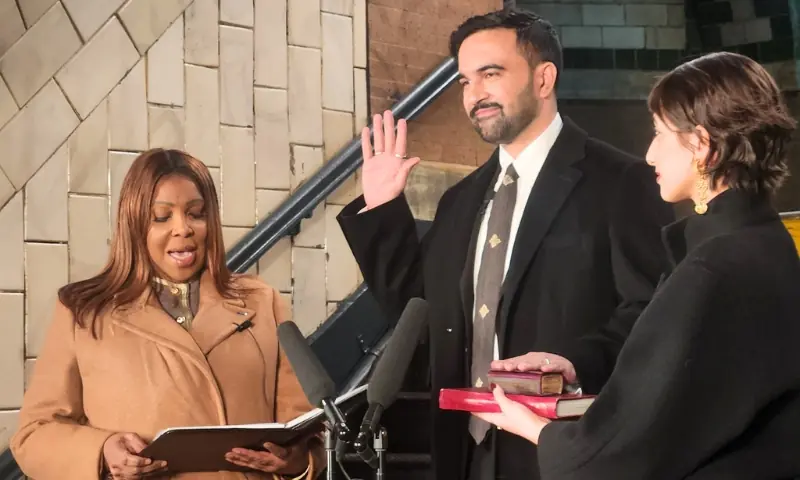 اٹارنی جنرل نیویارک لیٹیا جیم نے ظہران ممدانی سے ان کے عہدے کا حلف لیا۔ اس موقع پر زہران ممدانی کی اہلیہ بھی موجود تھیں۔