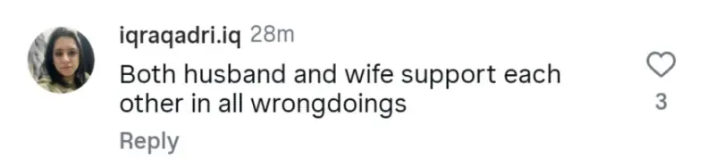 ایک صارف نے لکھا، ”یہ میاں بیوی ایک دوسرے کی ہر غلط حرکت میں ساتھ دیتے ہیں۔“