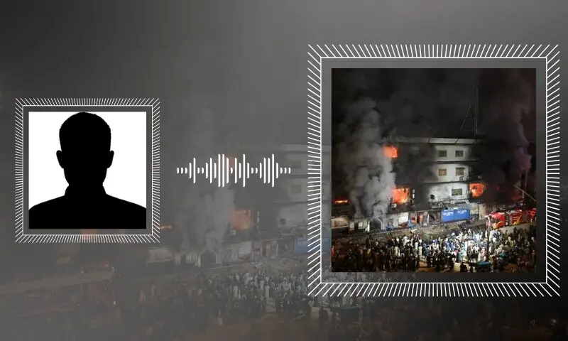 کراچی کے علاقے ایم اے جناح روڈ پر واقعے گل پلازہ میں پھنسے ایک شہری کا موبائل پر بھیجا آڈیو پیغام سامنے آگیا، جس میں وہ بتا رہا ہے کہ شدید آگ میں پھنس چکا ہوں اور اب نکلنا بہت مشکل ہے۔