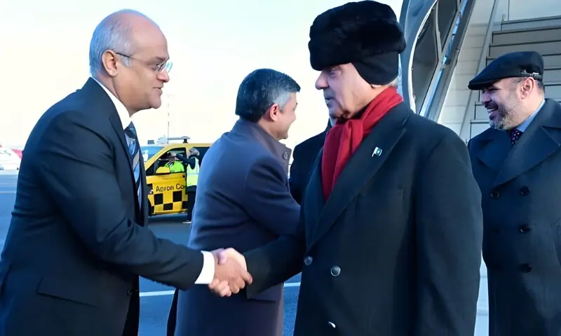 زیورخ ایئرپورٹ پر پاکستان کے مستقل نمائندے برائے اقوام متحدہ محمد بلال، سوئٹزرلینڈ میں پاکستان کے سفیر مرغوب سلیم اور سفارتی عملے نے وزیراعظم کا استقبال کیا۔ وزیراعظم کے ساتھ نائب وزیراعظم و وزیر خارجہ اسحاق ڈار، وفاقی وزیر اقتصادی امور احد چیمہ، وزیر خزانہ محمد اورنگزیب، وزیر اطلاعات عطا اللہ تارڑ اور معاون خصوصی طارق فاطمی بھی موجود ہیں۔