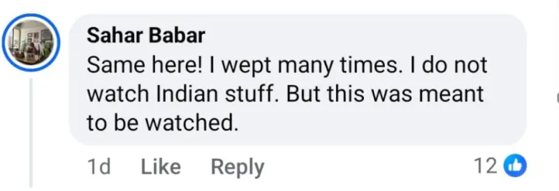 ایک مداح نے جذباتی انداز میں لکھا کہ انہوں نے فلم دیکھتے ہوئے کئی بار آنسو بہائے اور اگرچہ وہ عام طور پر بھارتی مواد نہیں دیکھتے، مگر یہ فلم دیکھنا ضروری محسوس ہوئی۔